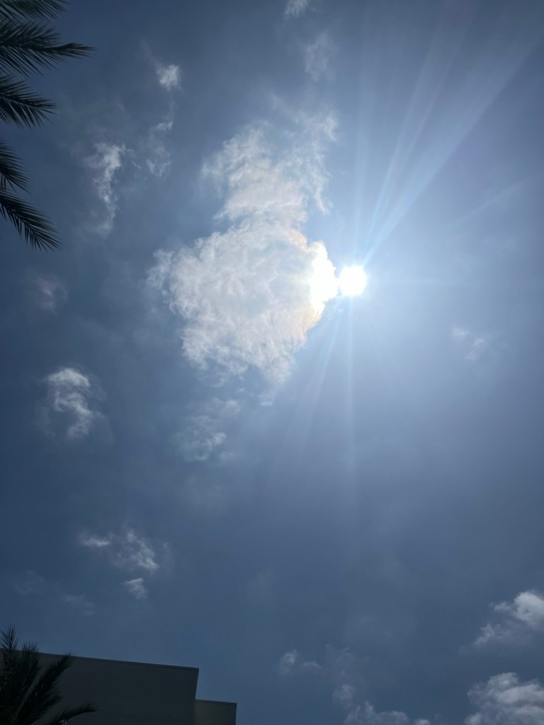Sun kisses my skin.